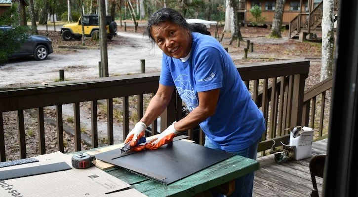 Este Enero, Maranatha Voluntarios Internacional completó su octavo proyecto en Camp Kulaqua en Florida, y 57 voluntarios se unieron al proyecto desde todo Estados Unidos. El equipo renovó cabañas y construyó una cabina de locutor para el ruedo de rodeo del campamento, terminando estas tareas con tiempo suficiente para proyectos adicionales como la construcción de una valla de arena para caballos de 60 pies y la pintura de 30 mesas de picnic. "Todos tienen este entusiasmo y energía porque están embelleciendo este campamento", comentó la voluntaria Celina Dawson. Este año, Celina viajó con su esposo y sus cinco hijos desde el estado de Washington para servir en Kulaqua, tal como lo han hecho durante los últimos ocho años.